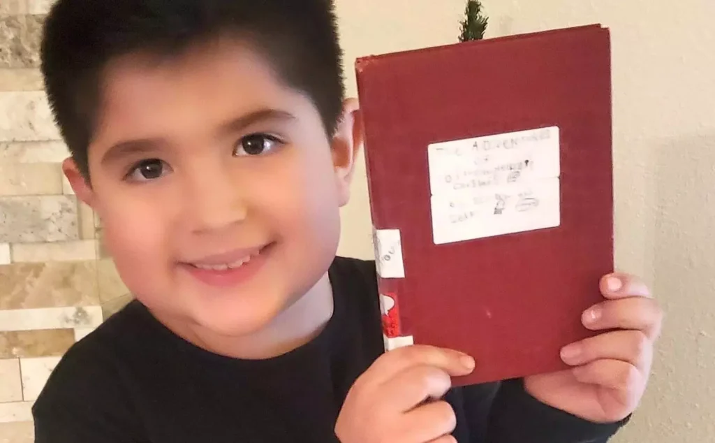 It’s tough to get published, so sometimes you have to take matters into your own hands. Just ask Dillon Helbig, the eight-year-old boy from Boise, Idaho, who spent four days in December 2021 writing an adventure book (they take a really long time to write!). Dillon knew he had penned a winner: in this time-travel saga, starring Dillon himself, a star explodes on top of a Christmas tree, hurtling Dillon into an encounter with Santa, a tree portal, and the first Thanksgiving in 1621.