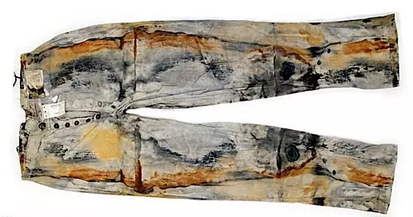 Because of the anaerobic condition of the trunk (containing little to no oxygen), no bacteria formed on the jeans and they remained preserved. They are white in color (it is unclear whether they began that way or turned white over time), with black and brown stains, perhaps caused while mining during the Gold Rush.