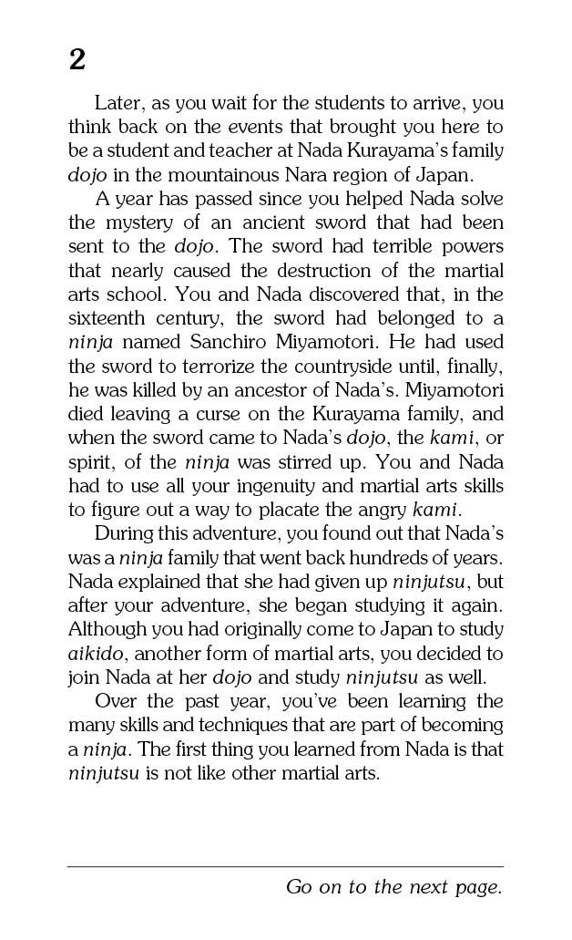 YOU are an older, wiser, and more powerful ninja, but challenging the threats to Nada’s dojo will take all of your skills. Will you be a match for the shugenja, warrior priests who hide in the rural mountainside? Police have the dojo covered, but you begin to suspect some are double agents who are involved in the mayhem. Keep your friends close, and your shuriken closer–you may need as many throwing stars as you can handle to keep Nada and her family safe. Be careful, the choices YOU make might end in glory, disaster, or certain death.