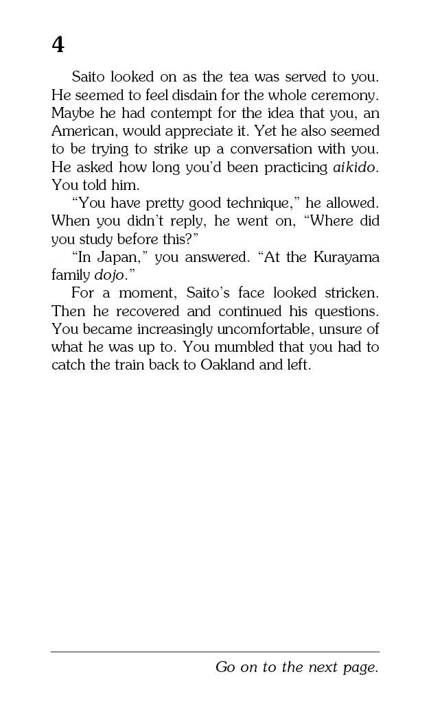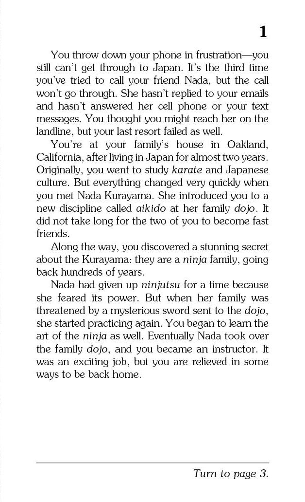 YOU trained in Japan to become a powerful ninja, and now your skills are needed in San Francisco. You are far from the magical dojo you once called home. But has the dojo’s strange curse followed you into your new life? You recognize ruthless gangsters you’ve crossed paths with before. Did they follow you here? You hear rumors that priceless antiques are making their way along the same route you just traveled–will the thefts be blamed on you? Be careful, the choices YOU make might end in glory, disaster, or certain death.