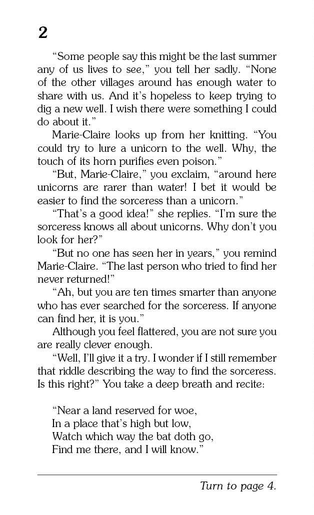 YOU are your medieval village’s last hope at finding a magical unicorn’s horn that can purify your water. Will your enchanted net catch a unicorn or a dragon? Can the sorceress help? Or will she cause even more trouble? A fire-breathing dragon, angry warlock, and powerful wood-witch all stand in your path. Be careful, the choices YOU make might end in glory, disaster, or certain death.