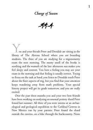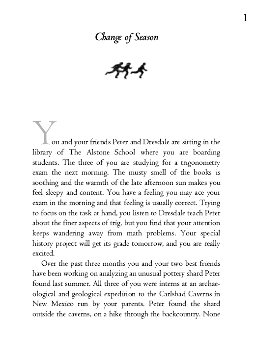 Your normal day at boarding school turns into a dangerous journey to inner earth when your parents go missing, and you are accused of harboring secrets. The choices you make will shape the future of the world you live in, and they will also lead you from this book into the next.